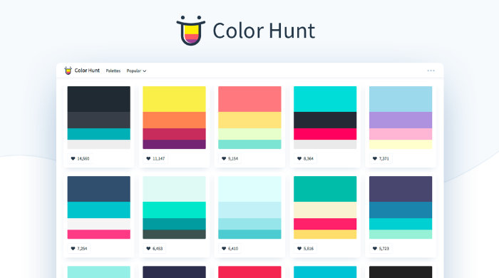 Color Hunt es una plataforma gratuita y abierta para la inspiración del color con miles de modernas paletas de colores seleccionadas a mano.