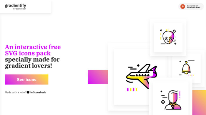 Un paquete de iconos SVG gratis e interactivo especialmente diseñado para los amantes del gradiente. Escoge tu gradiente y descargarlos.